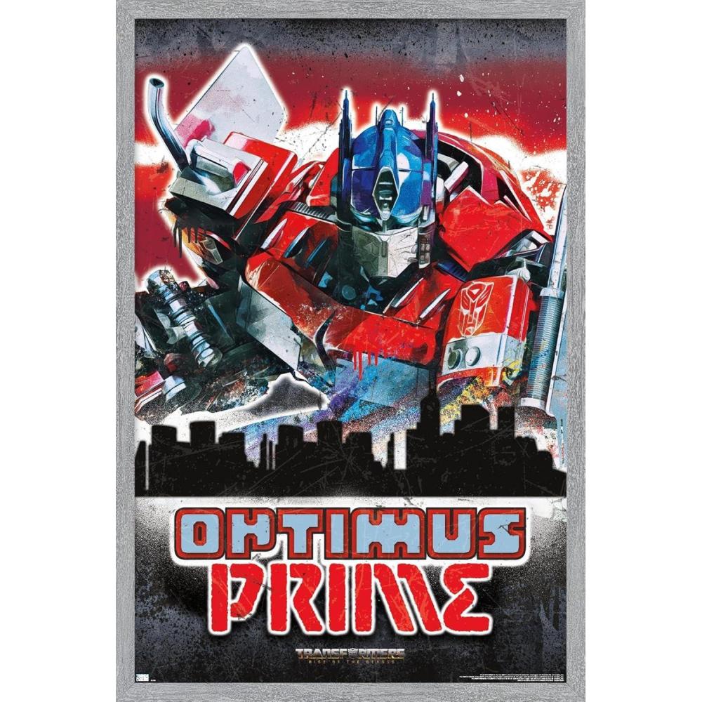 Hasbro Transformers: Rise of the Beasts – Optimus Prime Graffiti Wall Poster, 34L” x 22.4W”, Mahogany Framed Version(Gray Framed Version)