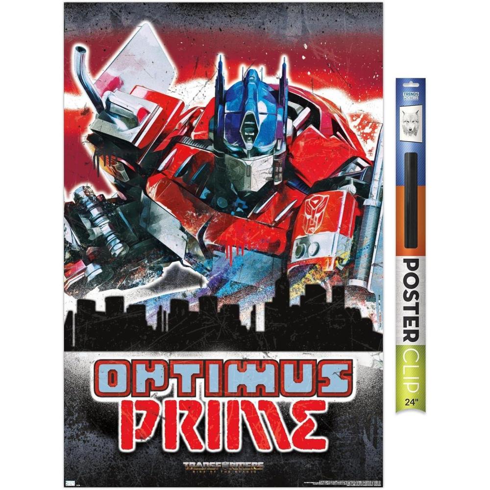 Hasbro Transformers: Rise of the Beasts – Optimus Prime Graffiti Wall Poster, 34L” x 22.4W”, Mahogany Framed Version(Premium Poster & Clip Bundle)