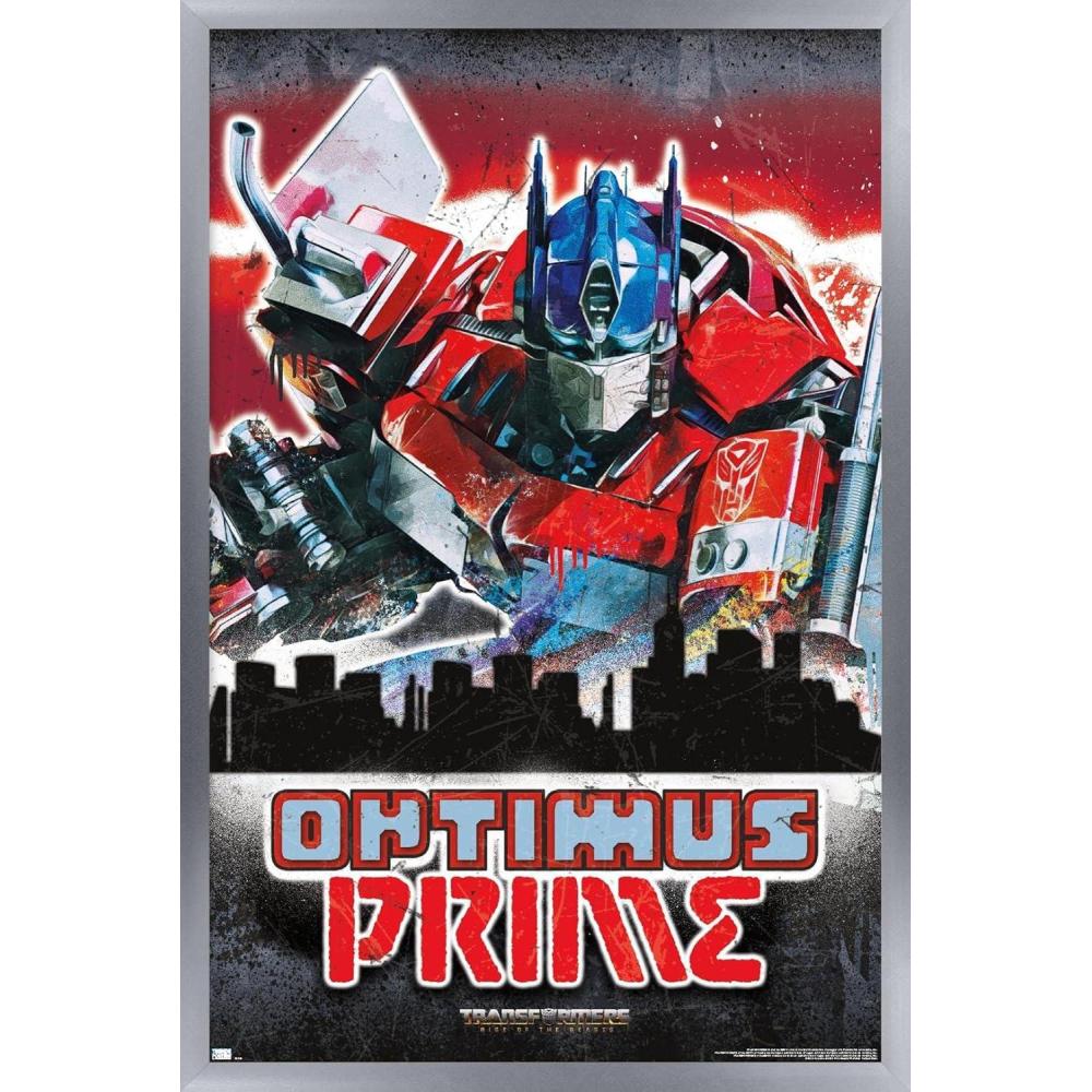 Hasbro Transformers: Rise of the Beasts – Optimus Prime Graffiti Wall Poster, 34L” x 22.4W”, Mahogany Framed Version(Silver Framed Version)