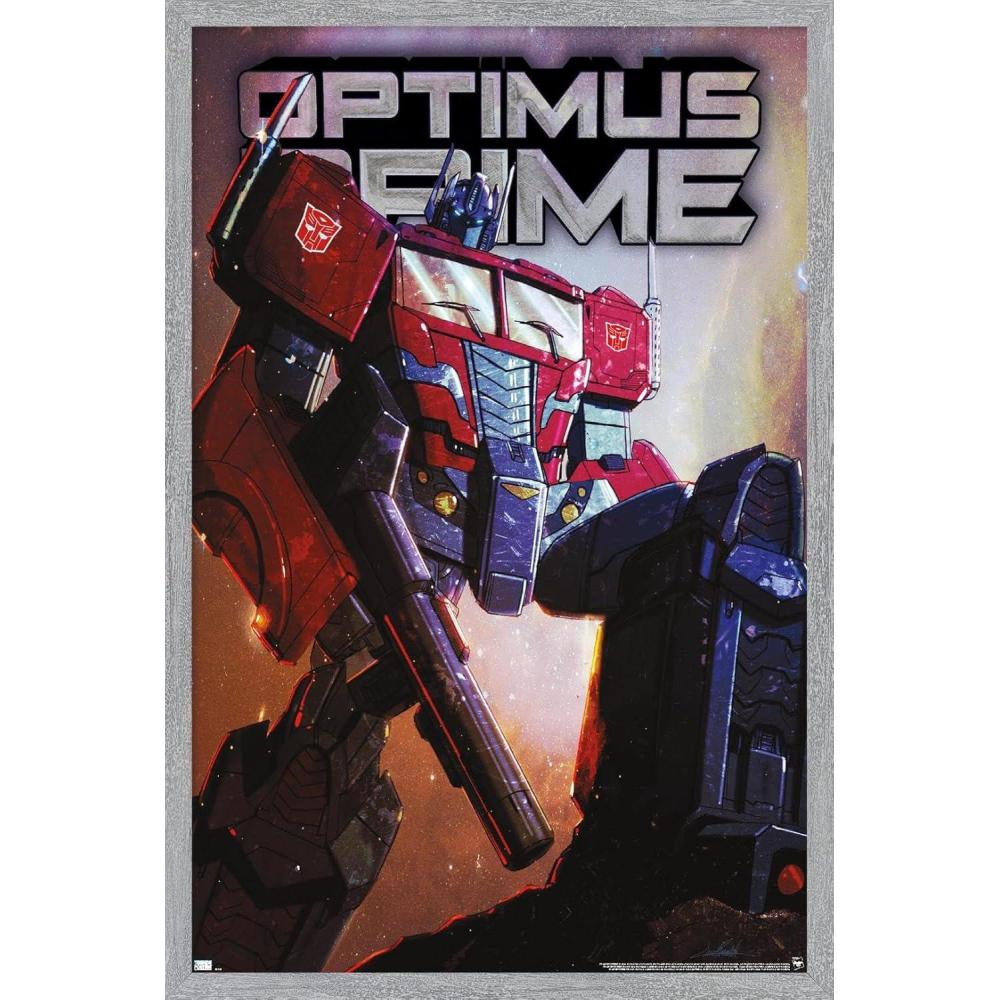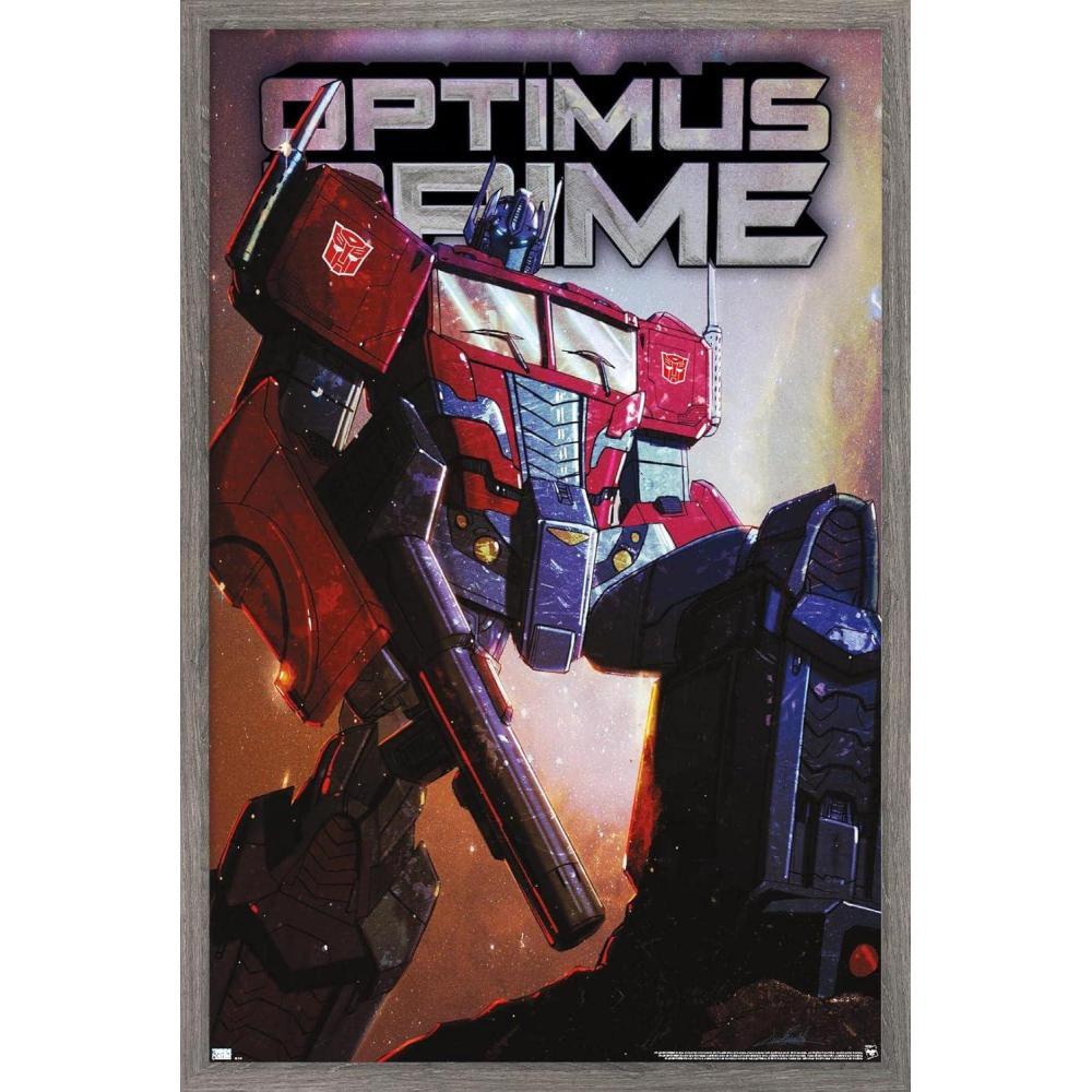 Hasbro Transformers – Optimus Prime Wall Poster, 34L” x 22.4W”, Poster & Clip Bundle(Gray Framed Version)