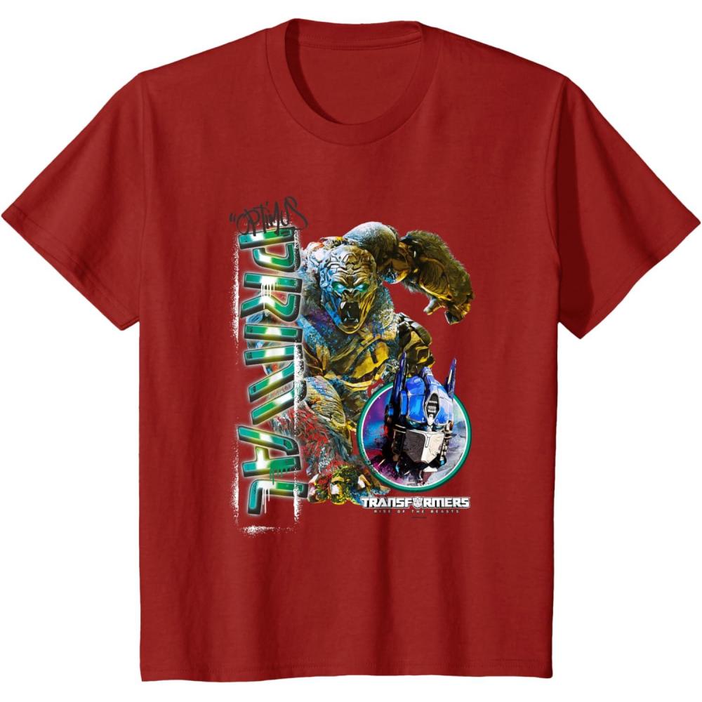 Kids Transformers: Rise of the Beasts Optimus Primal Urban Style T-Shirt(Cranberry Red)
